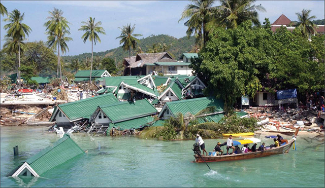 Khu dân cư ven biển ở Thái Lan hoang tàn sau một trận sóng thần. Ảnh: Reuters
