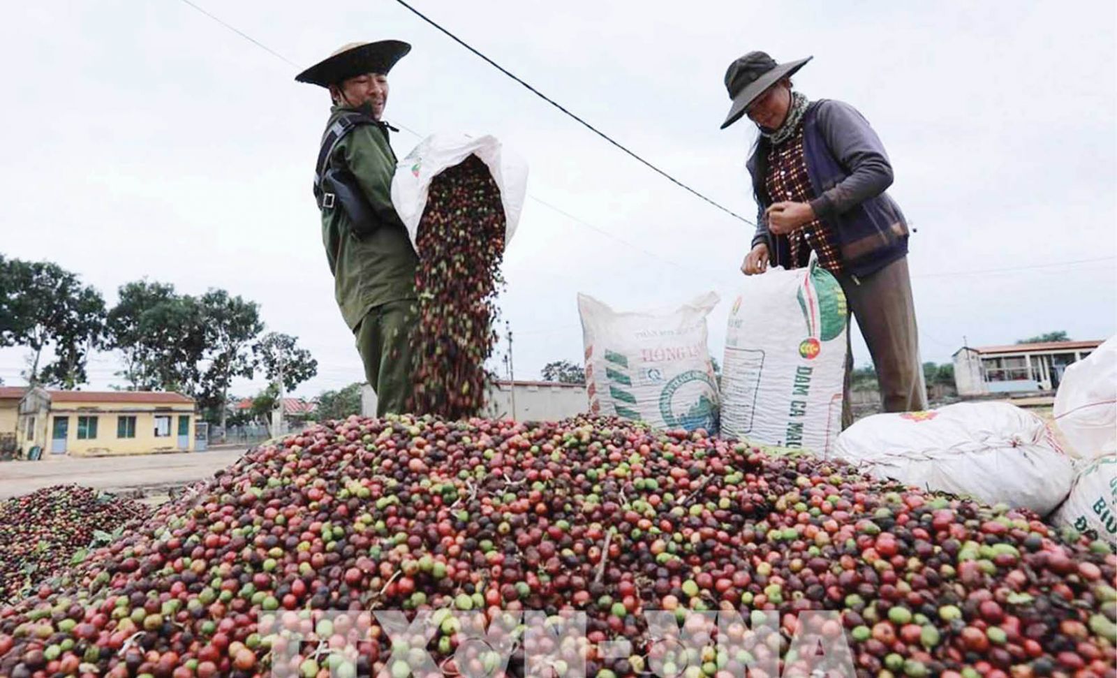 Cà phê sau khi được thu hoạch tại thành phố Buôn Ma Thuột. Ảnh minh họa: TTXVN