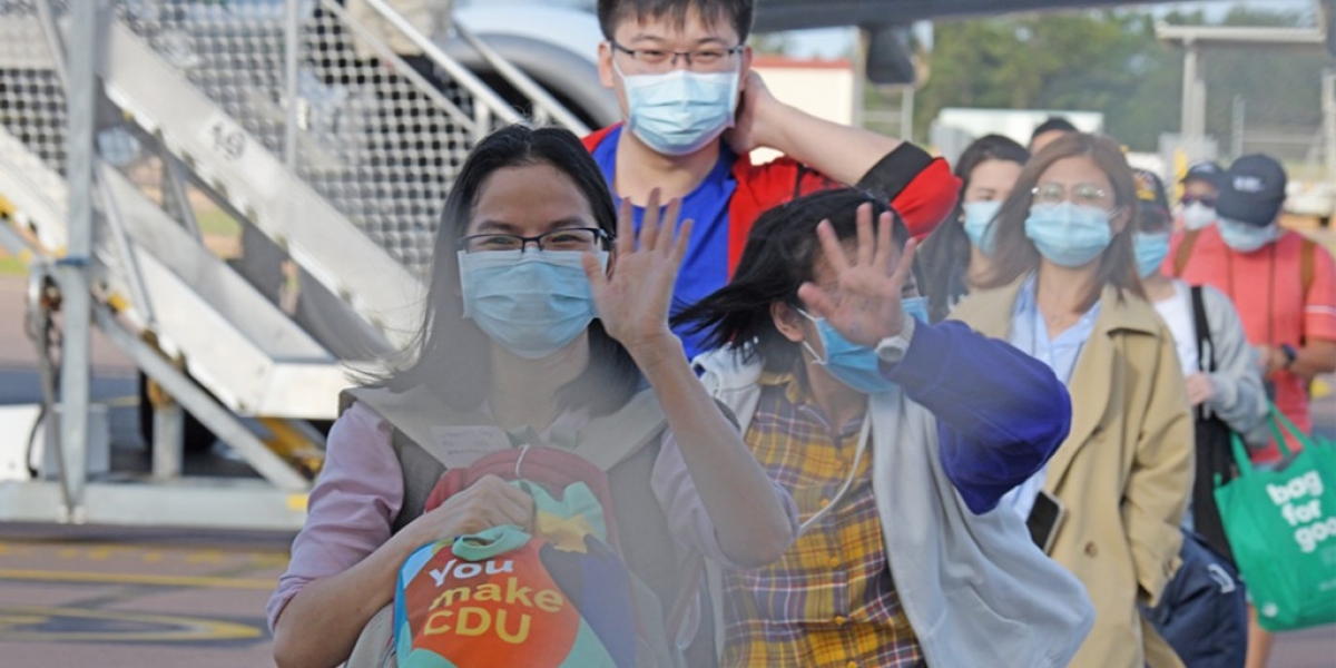 Nhóm 63 sinh viên quốc tế đâu tiên trở lại sau 9 tháng Australia đóng cửa biên giới. Ảnh Đại học Charles Darwin