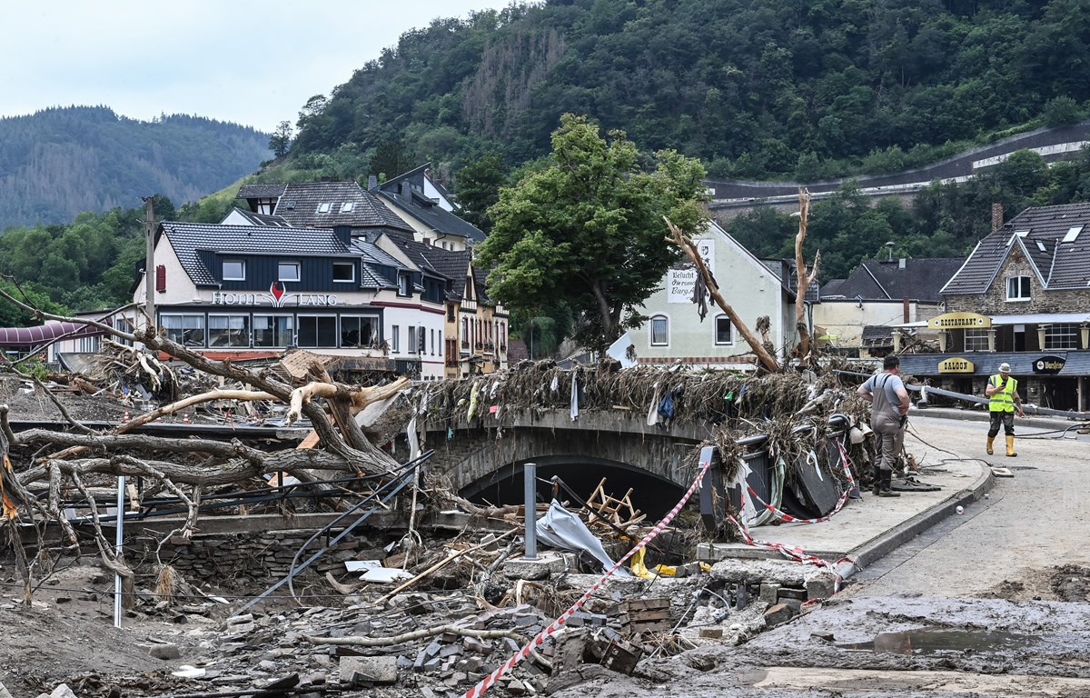 Mưa lũ để lại nhiều hậu quả nghiêm trọng tại tiểu bang Rhineland-Palatinate, Đức. Ảnh minh họa: AFP/TTXVN