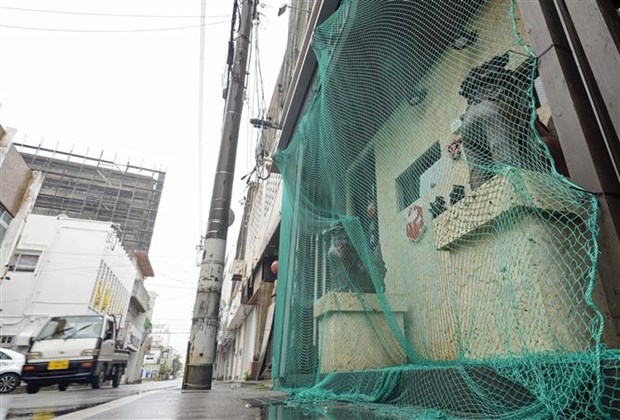 | Che chắn ứng phó với bão tại tỉnh Okinawa, Nhật Bản. Ảnh minh họa: Kyodo/TTXVN |