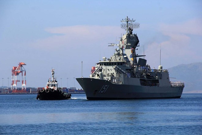 Tàu chiến HMAS Arunta của Hải quân Hoàng gia Australia ở Philippines ngày 7/10. (Nguồn: EPA)