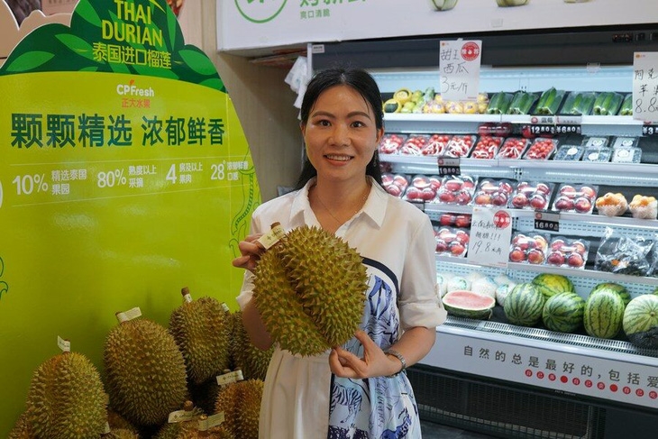 | Sầu riêng đã trở thành loại trái cây ưa thích của người tiêu dùng Trung Quốc và được bày bán tại các siêu thị nước này - Ảnh: MATICHON |