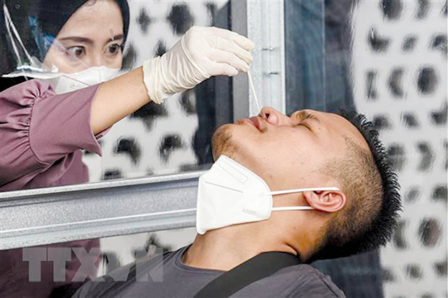 Người dân tại thủ đô Jakarta, Indonesia được lấy mẫu xét nghiệm COVID-19. Ảnh minh họa: THX/TTXVN