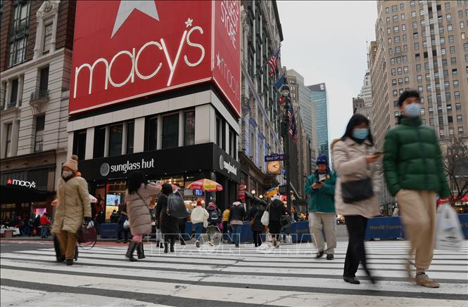 Người dân đi qua quảng trường Herald ở thành phố New York, Mỹ. Ảnh minh họa: AFP/TTXVN