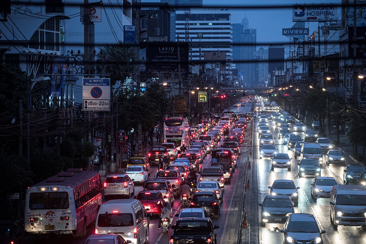 Mật độ giao thông dày đặc ở thủ đô Bangkok, Thái Lan lúc bình minh. Ảnh: AFP