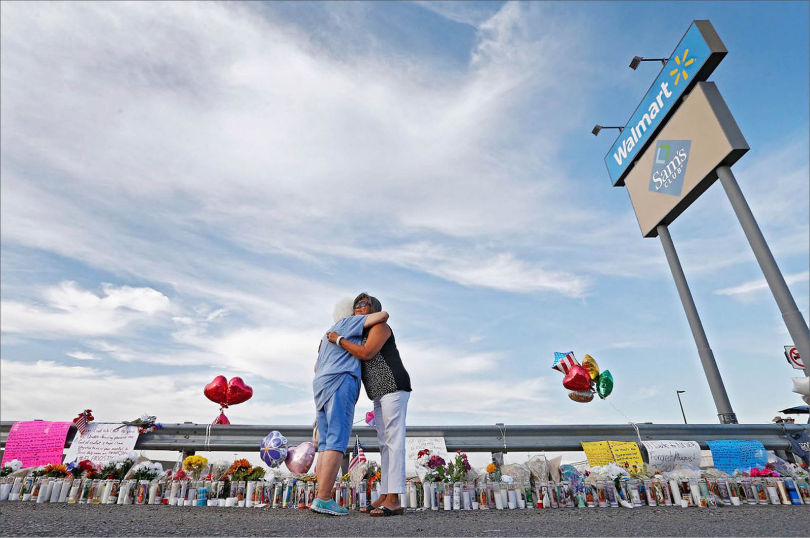 Người dân Mỹ tại nơi tưởng niệm tạm thời gần hiện trường vụ xả súng ở El Paso Walmart. Ảnh: EPA