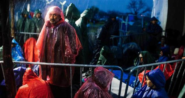 Người tị nạn ngâm mình dưới mưa ở biên giới Hy Lạp - Macedonian với hy vọng đến được châu Âu. Ảnh: AFP