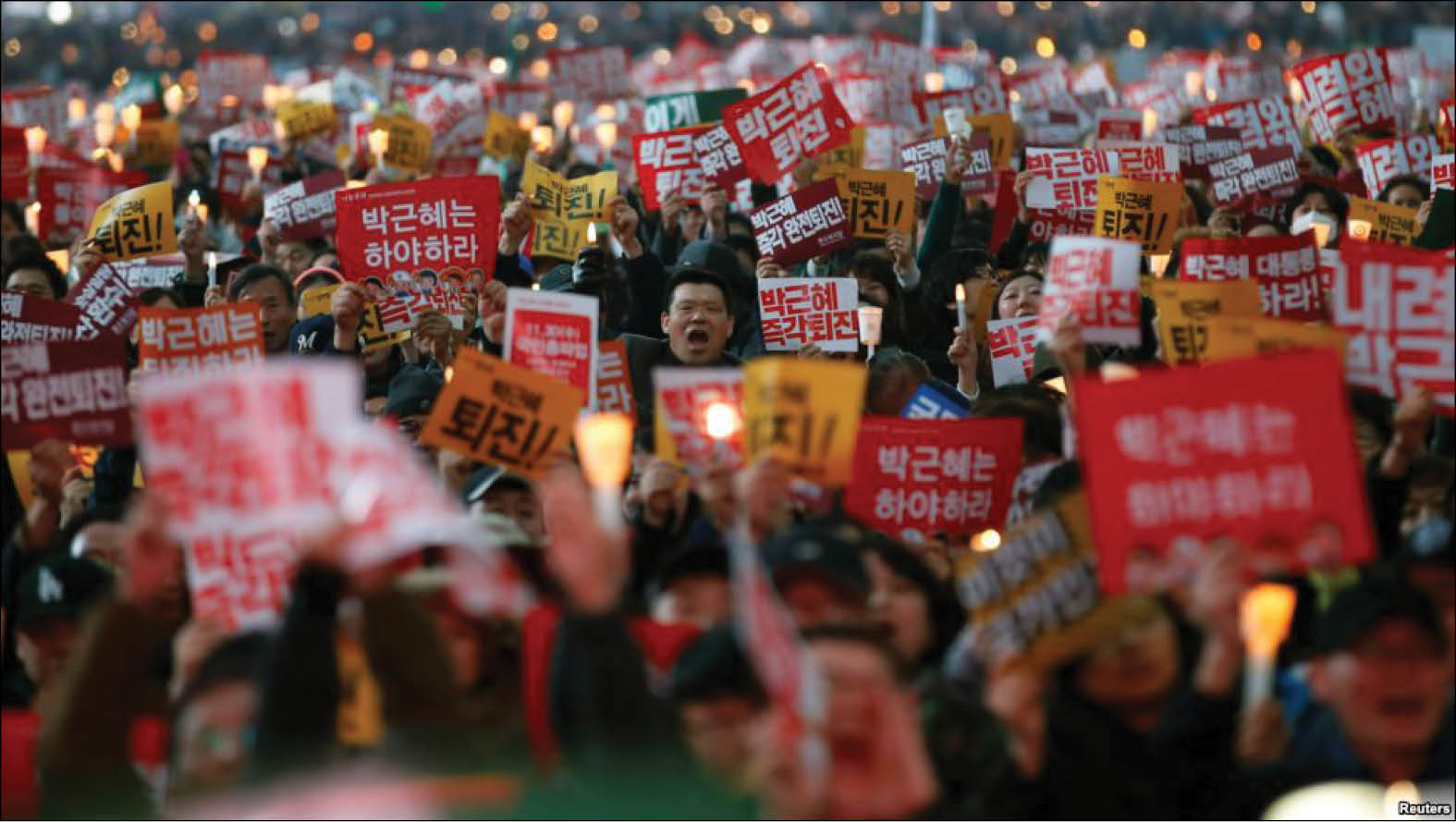 Biển người biểu tình yêu cầu Tổng thống Hàn Quốc Park Geun-hye từ chức ở Thủ đô Seoul. Ảnh: Reuters