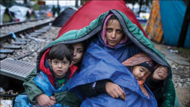 Bà mẹ cùng những đứa trẻ tị nạn ở khu tạm trú tại Hy Lạp. Ảnh: AP
