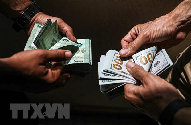 Người dân đổi tiền bảng Liban và tiền USD tại Beirut, Liban. Ảnh: AFP/TTXVN