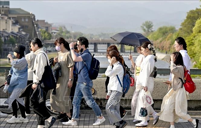 | Người dân đi bộ dưới thời tiết nắng nóng ở thành phố Kyoto, Nhật Bản. Ảnh minh họa: Kyodo/TTXVN |
