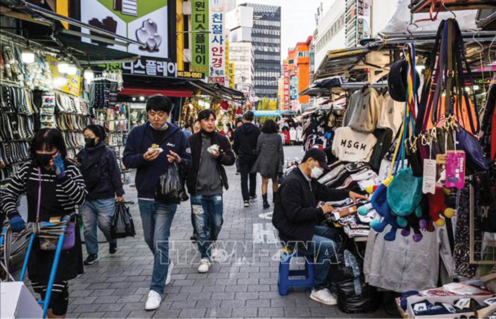 Du khách tham quan một khu chợ ở Thủ đô Seoul, Hàn Quốc. Ảnh minh họa: AFP/TTXVN