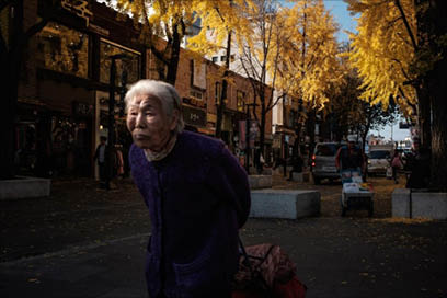 Một cụ bà đi bộ trong khu mua sắm nổi tiếng Insadong ở Seoul, Hàn Quốc. Ảnh: AFP