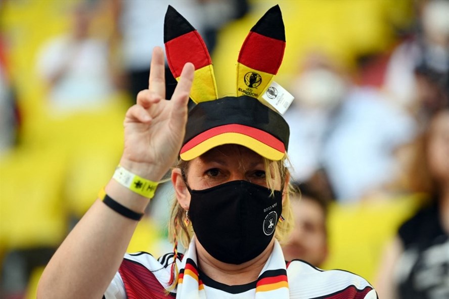 Cổ động viên Đức trước trận đấu ở bảng F của UEFA EURO 2020 giữa Pháp và Đức tại Allianz Arena ở Munich ngày 15.6. Ảnh: AFP