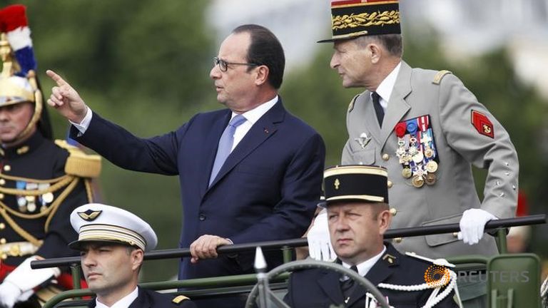 Tổng thống Pháp Francois Hollande và Tham mưu trưởng các lực lượng vũ trang Pierre de Villiers hôm 14/11/2015. Ảnh: Reuters