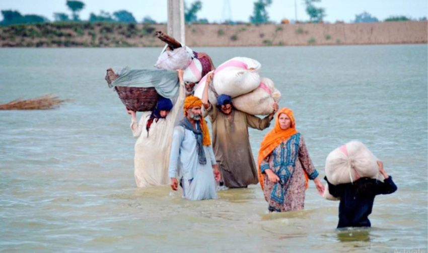 | Người dân Pakistan sơ tán trong một trận lũ lịch sử năm 2022. Ảnh: AP/Laodong |