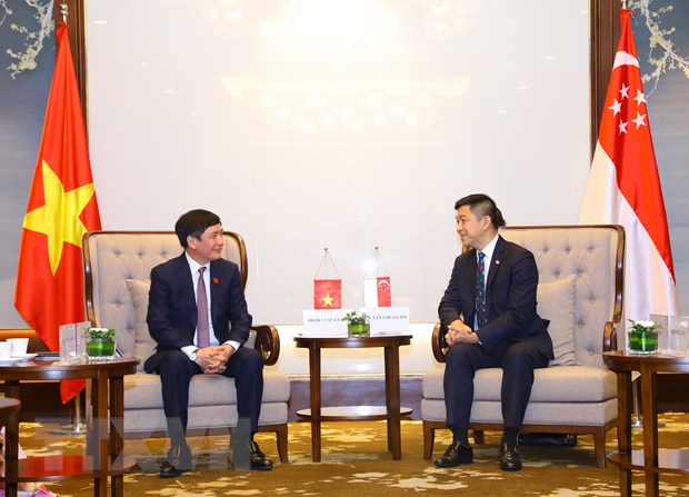 Chủ tịch Nhóm Nghị sỹ hữu nghị Việt Nam-ASEAN Bùi Văn Cường mong muốn Chủ tịch Quốc hội Singapore quan tâm thúc đẩy tăng cường quan hệ giao lưu giữa Nghị sỹ Quốc hội hai nước; phối hợp chặt chẽ, ủng hộ lẫn nhau tại các diễn đàn nghị viện khu vực và quốc tế.
