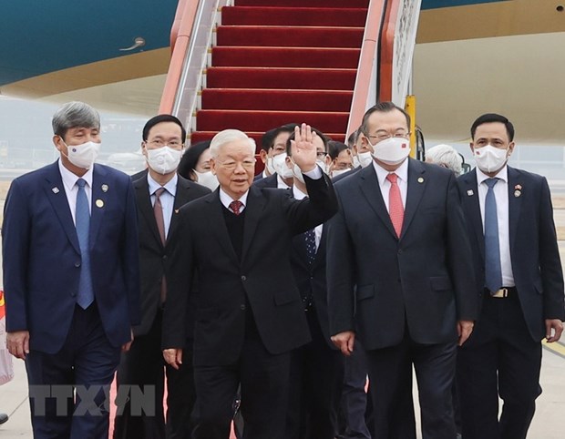 Tổng Bí thư Nguyễn Phú Trọng đến sân bay quốc tế Bắc Kinh. Ảnh: Trí Dũng/TTXVN