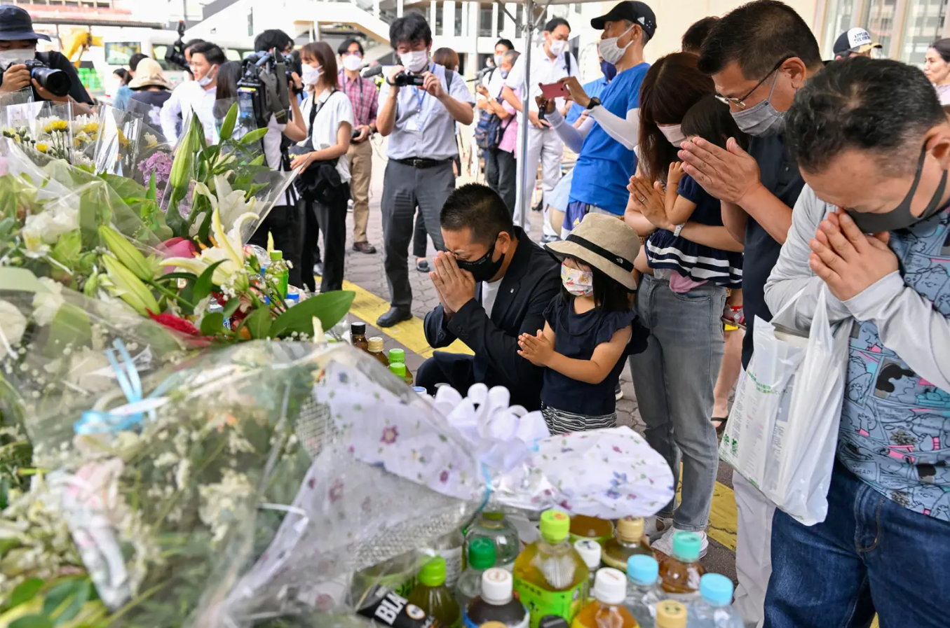 Người dân cầu nguyện gần khu tưởng niệm cựu Thủ tướng Nhật Bản Shinzo Abe, ngày 9/7/2022. Ảnh: AP/PLO