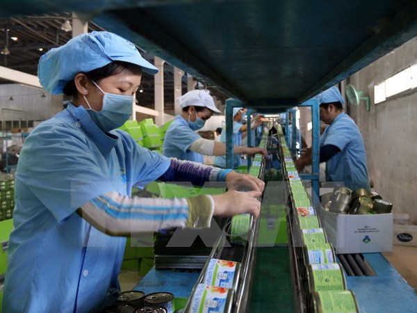 Chế biến cá đóng hộp xuất khẩu tại nhà máy KTCFOOD. (Ảnh: Lê Huy Hải/TTXVN)