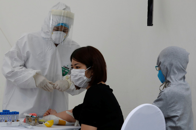 Một trạm xét nghiệm nhanh Covid-19 ở Hà Nội hôm 31-3. Việt Nam đang được cộng đồng quốc tế đánh giá là đã ứng phó tốt dịch bệnh này. Ảnh: REUTERS