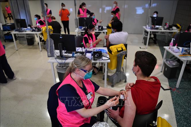 Một địa điểm tiêm vaccine ngừa COVID-19 ở thành phố Sydney, Australia. Ảnh minh họa: AFP/TTXVN