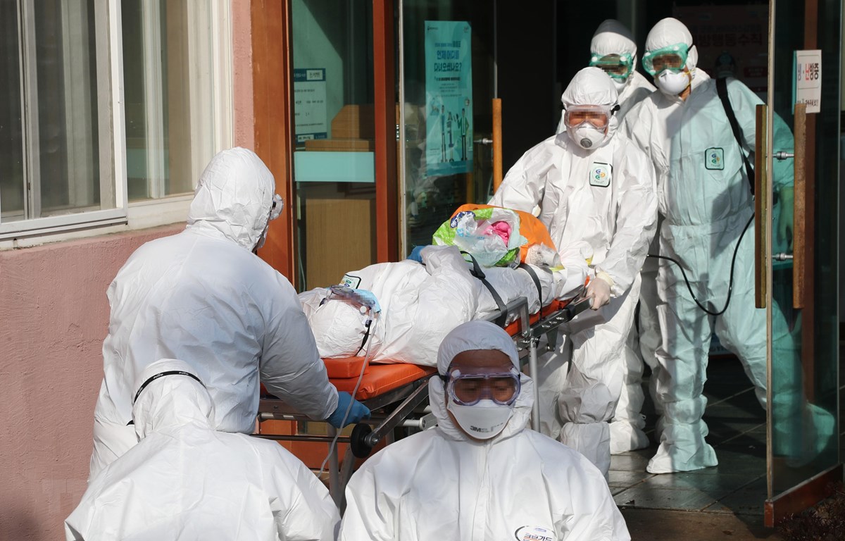 Một bệnh nhân nghi nhiễm COVID-19 được chuyển đi tại Cheongdo, Hàn Quốc. Ảnh minh hoạ: Yonhap/TTXVN