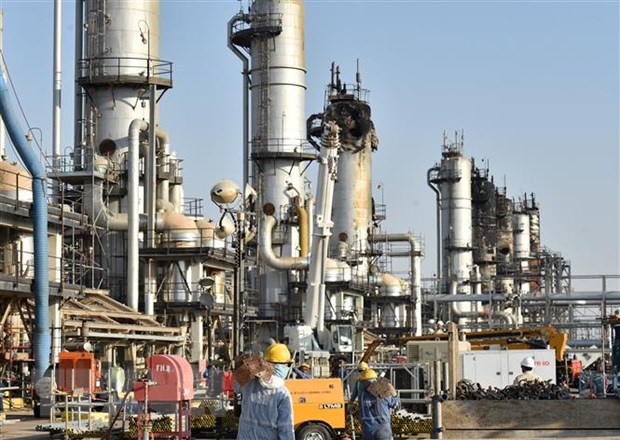 Công nhân làm việc tại nhà máy lọc dầu của Tập đoàn Dầu mỏ quốc gia Saudi Aramco, Saudi Arabia. Ảnh minh họa: AFP/TTXVN