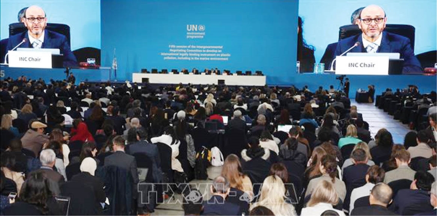 | Quang cảnh cuộc họp của Ủy ban đàm phán liên chính phủ về ô nhiễm nhựa tại Busan, Hàn Quốc. Ảnh minh họa: Yonhap/TTXVN |