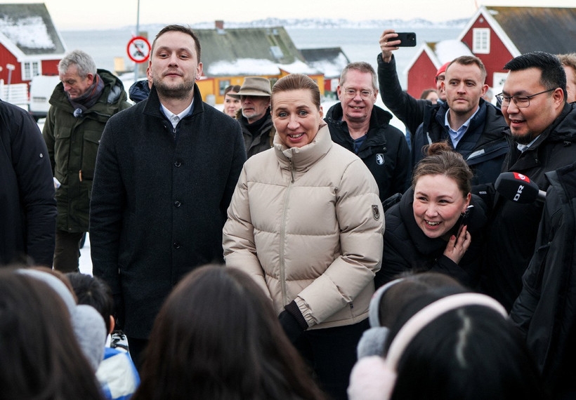 | Thủ tướng Đan Mạch Frederiksen (giữa) gặp gỡ người dân Greenland. |
