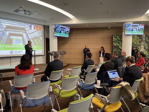 60 doanh nghiệp, nhà đầu tư của Việt Nam và Pháp đã tham dự buổi tọa đàm kinh tế với chủ đề "Nắm bắt những cơ hội kinh doanh tại Việt Nam trong chuyển đổi số và năng lượng" tại Paris.