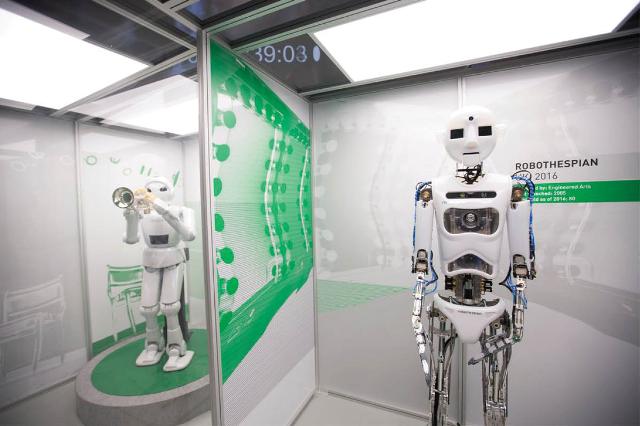 Nổi bật trong số đó là RoboThespian, một con robot hình người với đầy đủ các bộ phận, có thể di chuyển xung quanh triển lãm và thậm chí hát cho du khách tham quan.