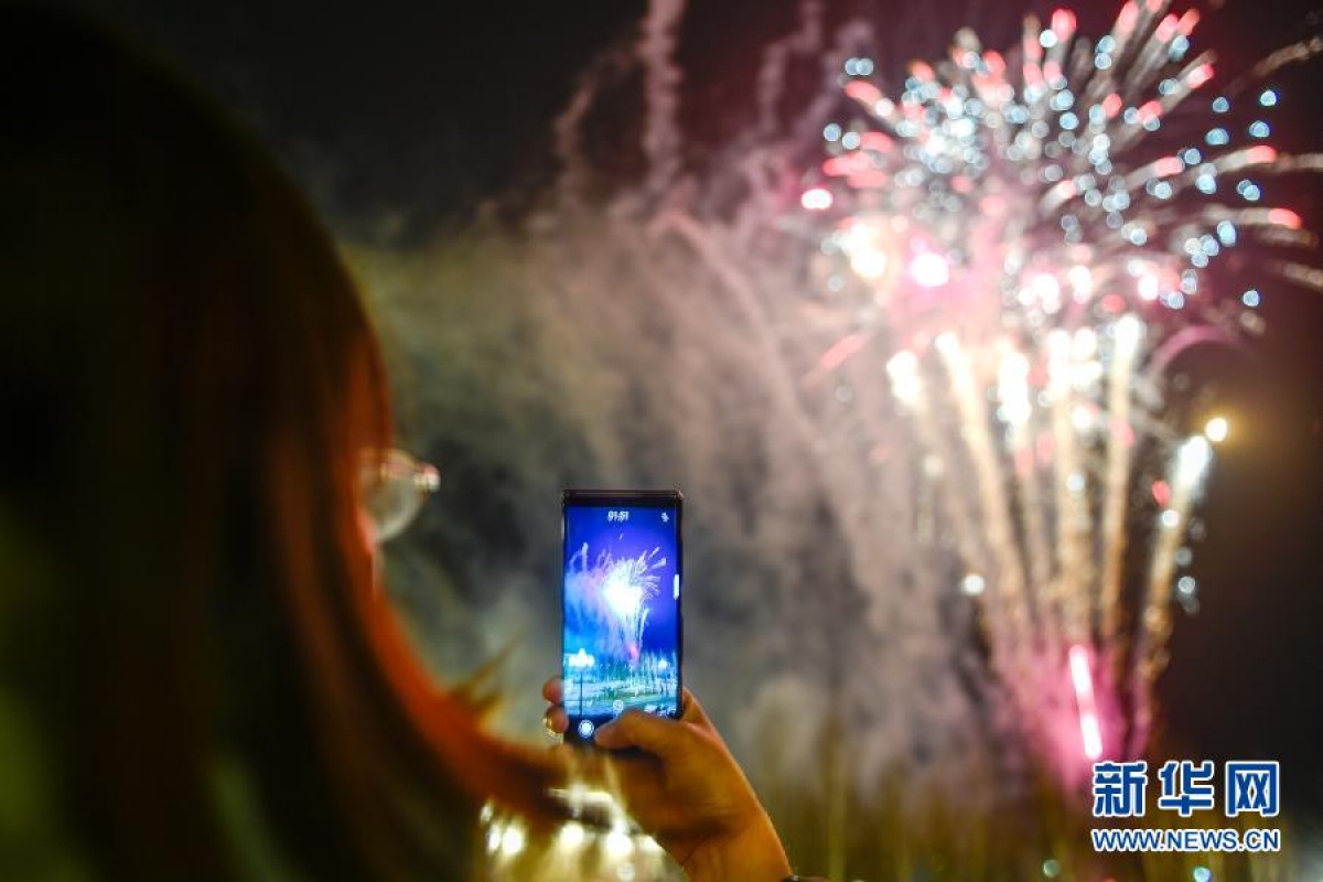 Người dân Trung Quốc đốt pháo bông đón Tết. Ảnh: Tân Hoa Xã