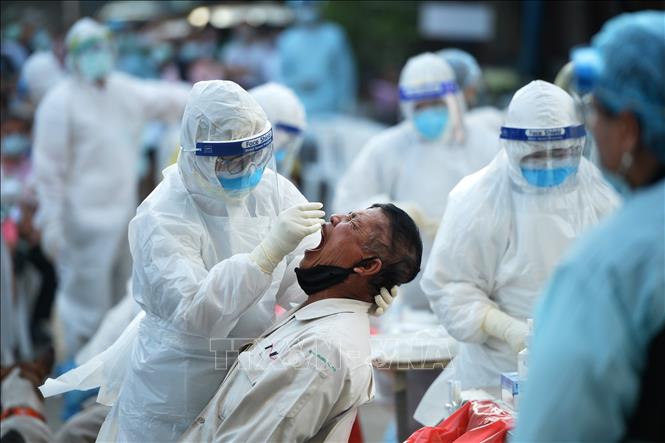 Nhân viên y tế lấy mẫu xét nghiệm COVID-19 cho người dân ở Thái Lan. Ảnh: THX/TTXVN
