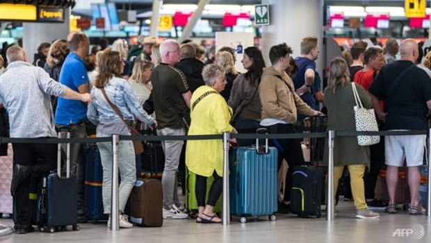 | Du khách xếp hàng chờ làm thủ tục tại sân bay Schiphol, Hà Lan. Ảnh minh họa: AFP/TTXVN |