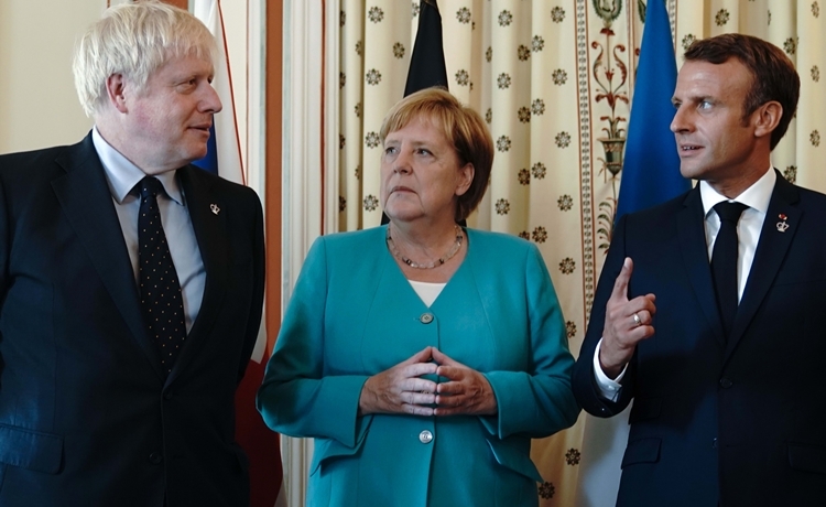 Từ trái qua phải: Thủ tướng Anh Boris Johnson, Thủ tướng Đức Angela Merkel và Tổng thống Pháp Emmanuel Macron dự hội nghị thượng đỉnh G7 ở Pháp hồi tháng 8 năm ngoái. Ảnh: Reuters/Vnexpress