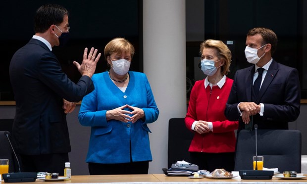 Các nhà lãnh đạo Liên minh châu Âu (EU) ngày 21/7 đã đạt được thỏa thuận về gói phục hồi kinh tế của khối trong giai đoạn hậu đại dịch COVID-19 trị giá 750 tỷ euro. Mục đích của gói này là cung cấp các khoản hỗ trợ và khoản vay để đối phó với tác động của cuộc suy thoái do đại dịch COVID-19 gây ra.