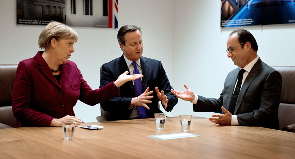 Các nhà lãnh đạo Đức, Anh, Pháp trong một cuộc họp của EU ngày 15/10/2015. Ảnh: AFP.