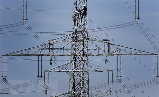 Đường dây truyền tải điện của Công ty điện lực Đức RWE ở Moers. Ảnh: AP/TTXVN