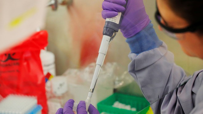 Nhân viên kỹ thuật tiến hành xử lý mẫu xét nghiệm SARS-CoV-2 ở Mỹ. Ảnh: Reuters