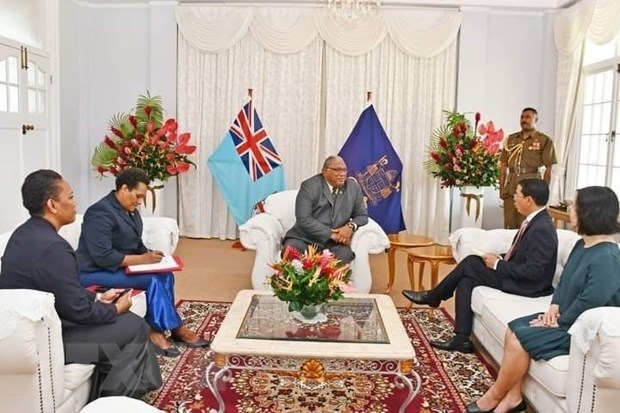 | Tổng thống Cộng hòa Fiji tiếp thân mật Đại sứ Nguyễn Văn Trung. Ảnh: TTXVN phát |