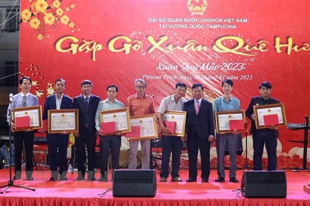 Nhân dịp này, Ban tổ chức đã công bố quyết định và trao tặng các bằng khen, giấy khen, kỷ niệm chương của Bộ trưởng Bộ Ngoại giao Việt Nam, Chủ nhiệm Ủy ban về người Việt Nam ở nước ngoài và Đại sứ Việt Nam tại Vương quốc Campuchia cho các tập thể, cá nhân có thành tích xuất sắc tiêu biểu, có nhiều đóng góp cho hoạt động cồng động tại địa bàn trong năm 2022 vừa qua.