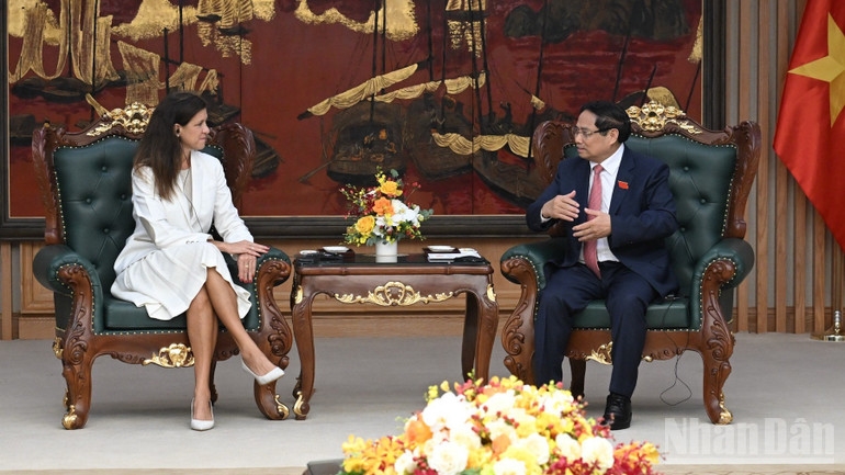 | Thủ tướng Chính phủ Phạm Minh Chính tiếp bà Mavi Zingoni, Giám đốc điều hành phụ trách mảng nguồn điện của Công ty GE Vernova. (Ảnh: TRẦN HẢI) |
