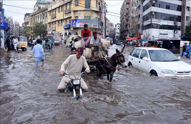 Ngập lụt trên một con đường tại thành phố Karachi, Pakistan hồi tháng 7 năm nay. Ảnh minh họa: THX/TTXVN