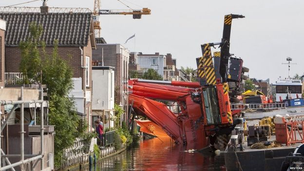 Cần cẩu đổ sập vào các toà nhà ở Hà Lan. Ảnh: BBC