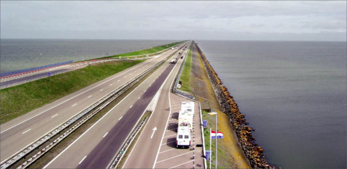 Con đê trị thuỷ Afsluitdijk còn đóng vai trò là tuyến cao tốc nối hai tỉnh Noord Holland và Friesland. Ảnh: vtv.vn
