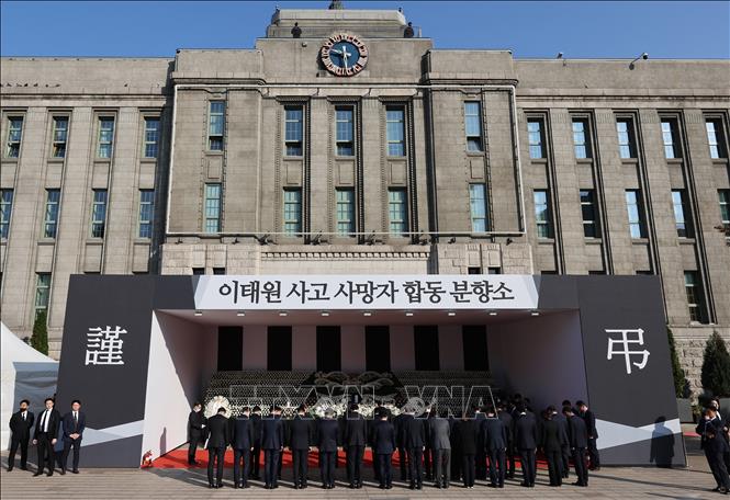 Sáng 3/11, Tổng thống Hàn Quốc Yoon Suk-yeol tiếp tục đến đặt hoa tại khu tưởng niệm các nạn nhân thiệt mạng trong thảm họa giẫm đạp ở Itaewon hôm 29/10. Đây là lần thứ 4 trong tuần này Tổng thống Yoon đến thắp hương tại khu tưởng niệm ở Tòa thị chính Seoul và bàn thờ tự phát của người dân lập ngay gần con hẻm xảy ra thảm họa.