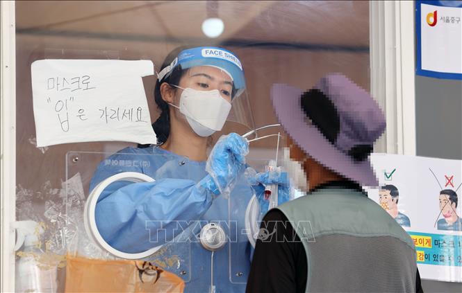 Người dân tại thủ đô Seoul, Hàn Quốc được lấy mẫu xét nghiệm COVID-19. Ảnh minh họa: Yonhap/TTXVN