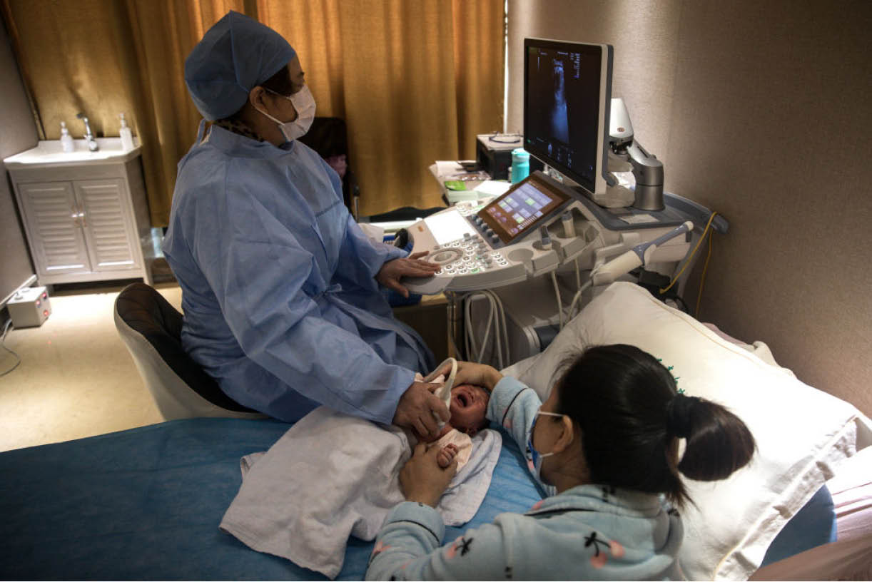 Nhân viên y tế đang siêu âm cho một trẻ sơ sinh ở Trung Quốc. Ảnh: Getty Image